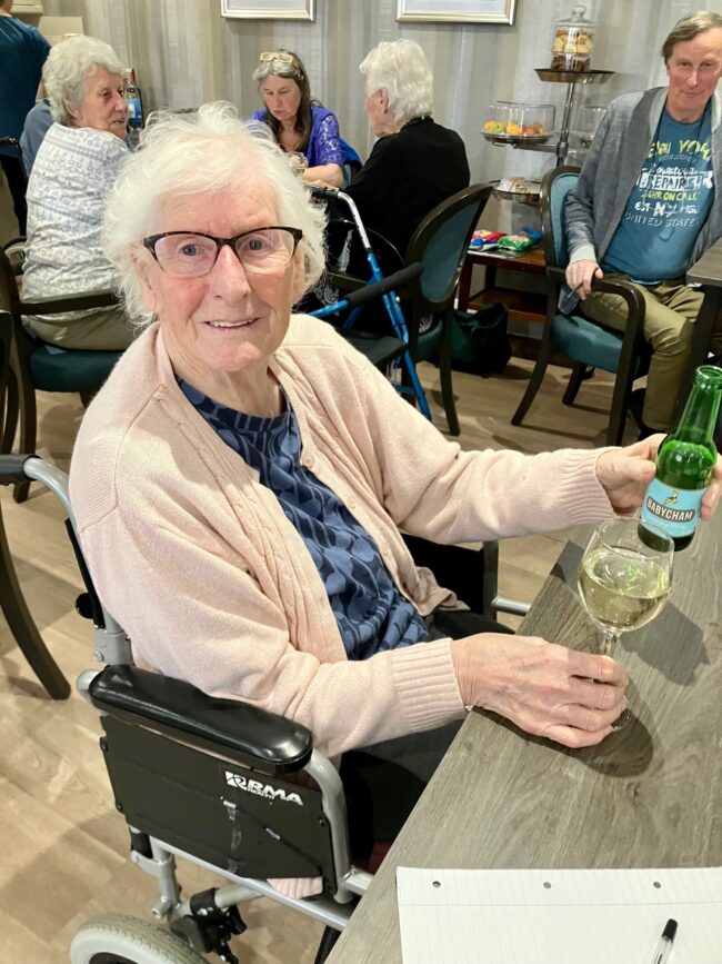 We formed our teams and had bar snacks and drinks while listening to music as we got ready to start. When we talked about the plans for the quiz at our resident’s meeting, one resident had said she used to love a Babycham – so we were able to get some Babycham in for her to enjoy at the quiz!